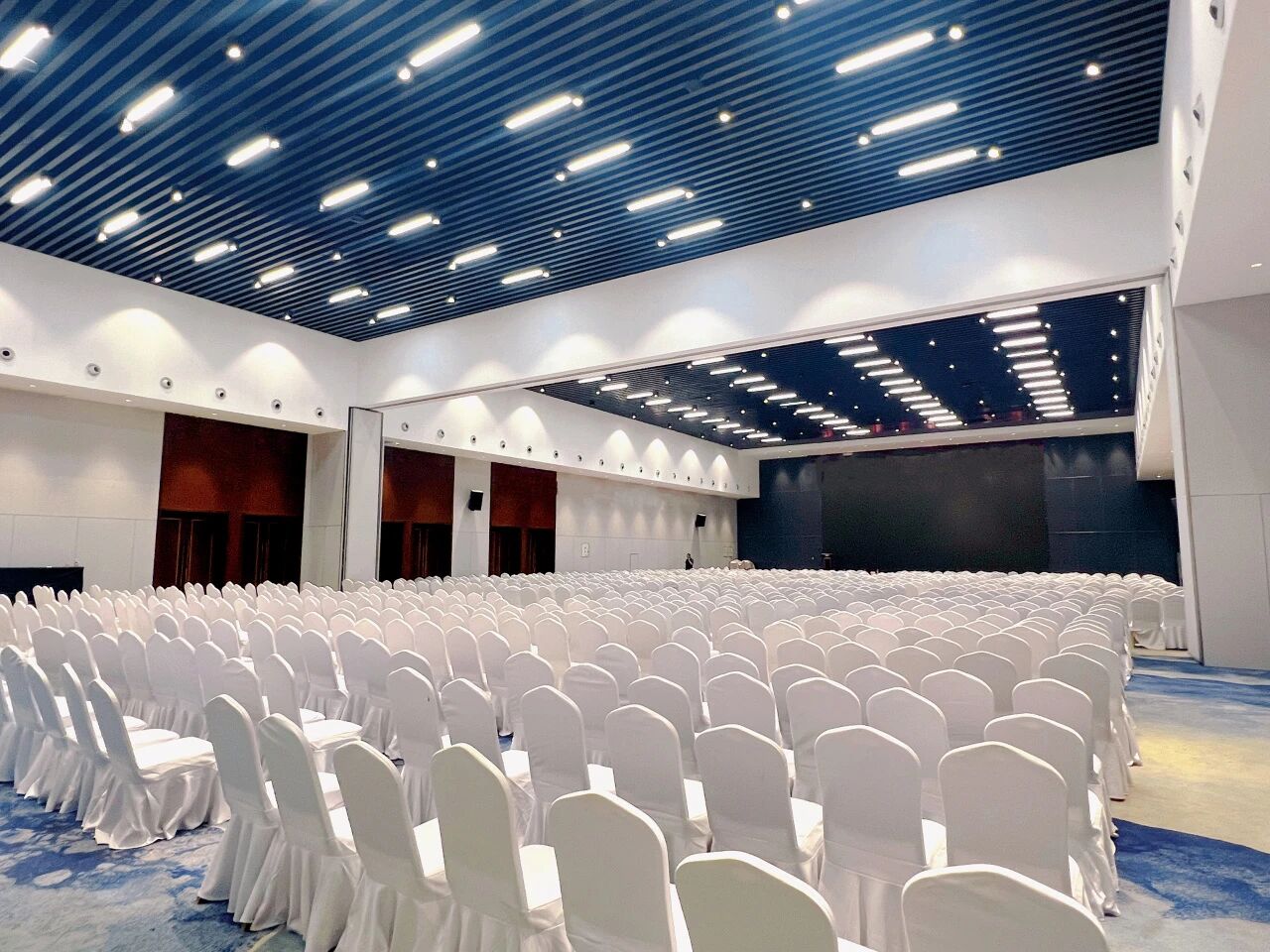 支持剧院式(颁奖、演讲)、课桌式(培训、研讨)、圆桌式(晚宴互动)、岛屿型(小组交流、协作)等多种会议台型灵活组合安置,适配表彰大会、行业论坛、主题晚宴、内部培训、小组研讨等各类场景,满足年会不同环节的场景切换需求。搭配高清大屏、专业音响等先进视听设备,让年会每一环都显专业质感。