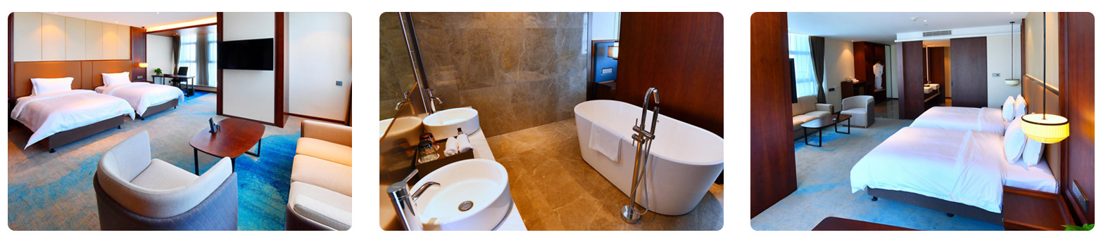 •舒适旅居:300余间客房涵盖豪华大床、亲子套房等多种房型,配备高速网络与智能设备;11间多功能会议室(含 1500㎡国际会议中心),可轻松承接 1200 人大型会议,满足各类商务洽谈、学术论坛需求。
