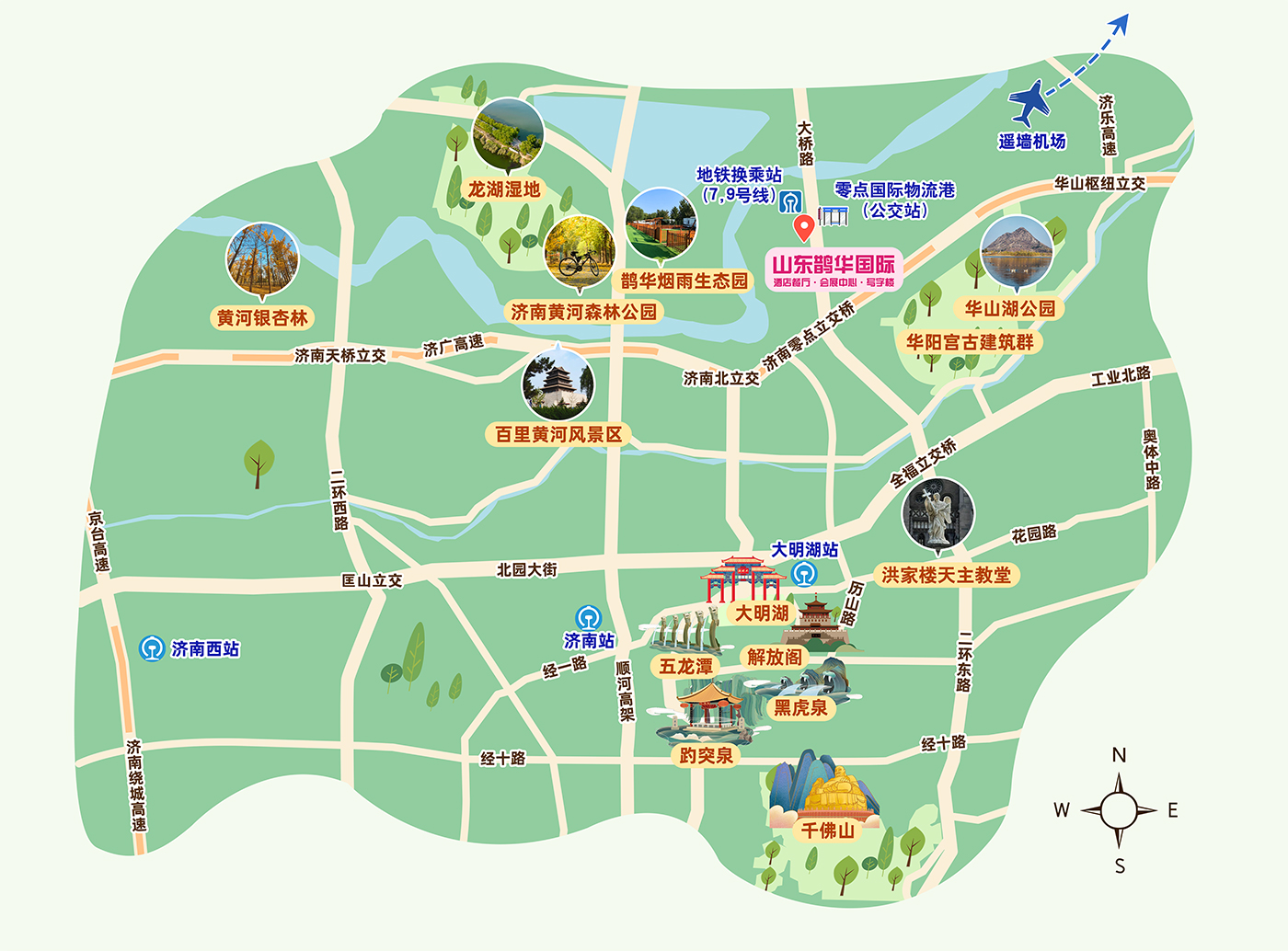 自然景观:毗邻鹊山、华山与九曲黄河等多个景区,可赏“鹊华烟雨”,观黄河壮阔,感受自然之美。